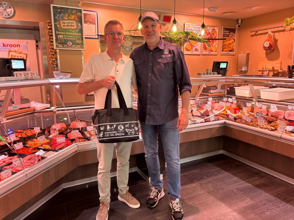 Op zaterdag 14 haalde de man van Anja Mussen, winnares van onze ‘Week van de Stenen Winkel’-campagne, de gevulde koeltas ter waarde van € 120 op. We wensen het gezin er veel plezier culinair plezier mee!